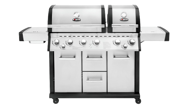 Tame your wildest menu with Monster Grill. Our professional pitmasters have built the ultimate setup. So, you can cook intense, flame-grilled food. Just the way you like it. Push your beast to its limits; load with top-quality steak, halibut or shrimp. Sear delicate foods on the hotplate. Warm signature sauces on the side burner. And toast brioche buns on the warming rack. Each gas-powered grill offers supreme temperature control. A high-quality stainless-steel build. Cast-iron grill plates. And a premium double-skin lid for extreme heat retention. Want that authentic smokey taste? You know the score; add a smoker box filled with fragrant wood chips or raw coals.