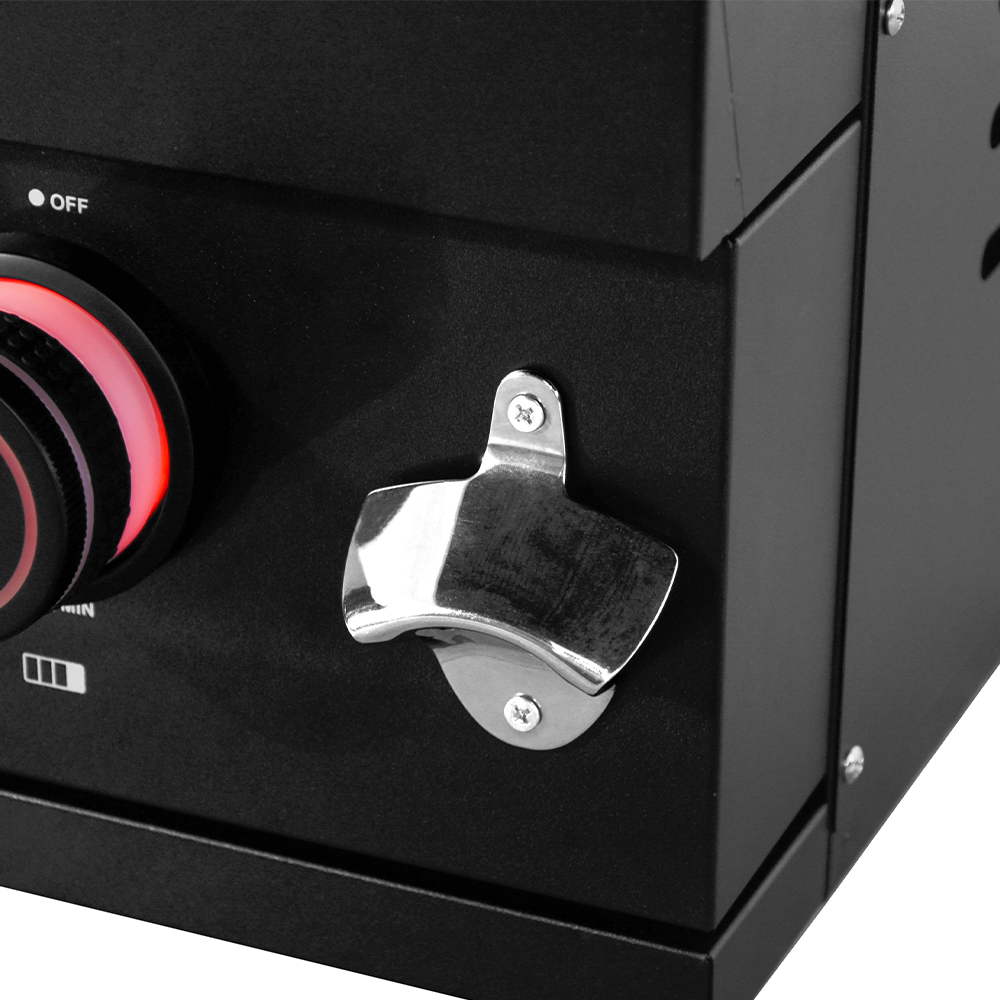 Two-colour LED control knobs add a premium finish and clear burner indication, while a built-in bottle opener and front pull-out drip tray make entertaining and cleaning effortless.