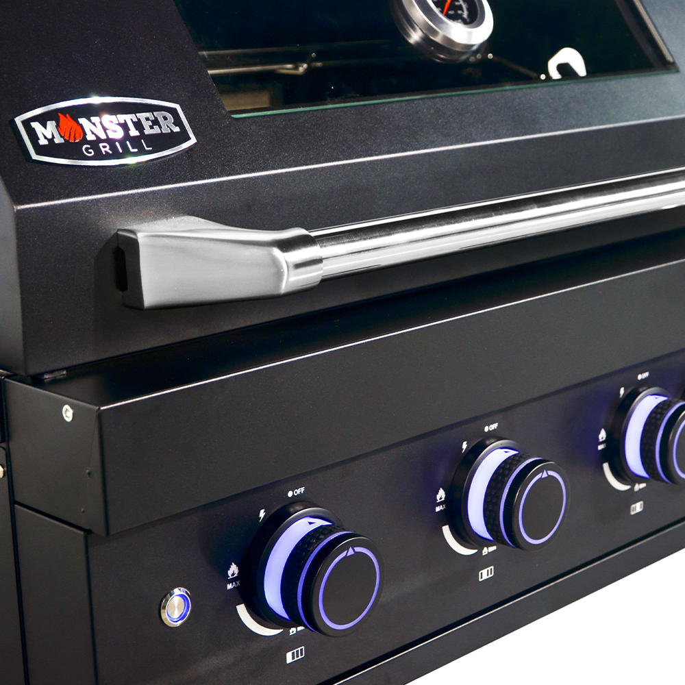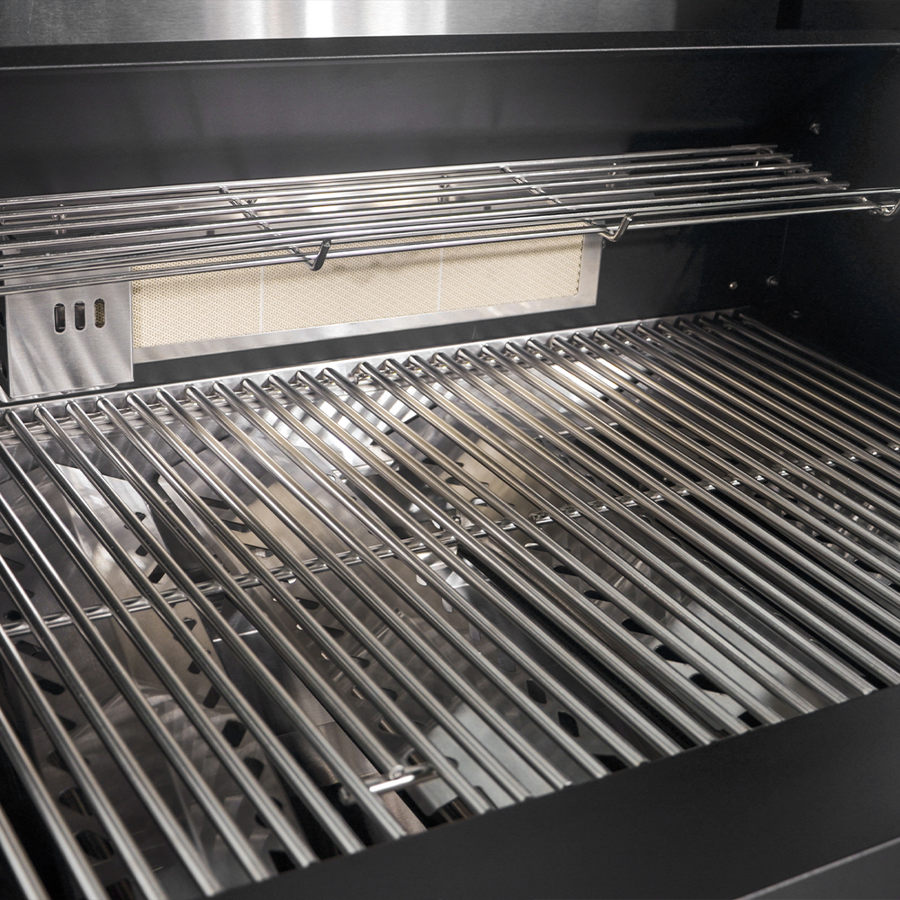 Four high-output stainless steel burners deliver fast heat-up and precise control, while the infrared rear burner provides intense heat for searing and rotisserie-style cooking.